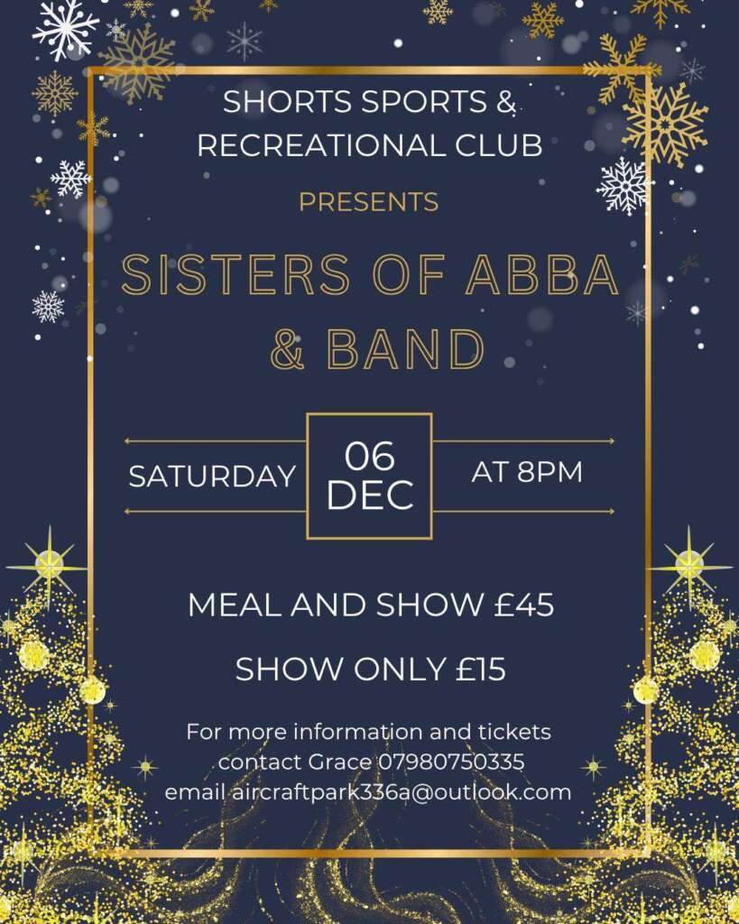 🌟 Sisters of ABBA & Live Band – Saturday 6th December, 8PM 🌟